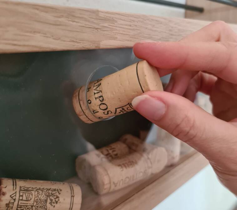 Der WEINRAHMEN besteht aus vier Kompartimenten, in welche die Weinkorken über präzis gelaserte kreisrunde Ausschnitte in den Plexiglasscheiben eingeworfen werden. So bewahrt der WEINRAHMEN unsere Erinnerungen an die tollen Weine und die Anlässe, an welchen sie genossen wurden. Mit jedem weiteren eingeworfenen Korken füllt sich der WEINRAHMEN mehr und mehr und das Bild komplettiert sich allmählich mit Ihren ganz persönlichen Weinerinnerungen. Die Rückwand eines jeden Kompartiments ist in dezentem anthrazit gehalten und ist für ein allfälliges Entfernen der Weinkorken, z.B. zu Reinigungszwecken, bequem demontierbar.